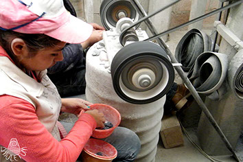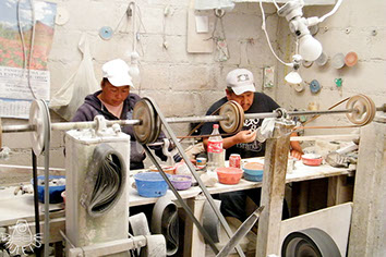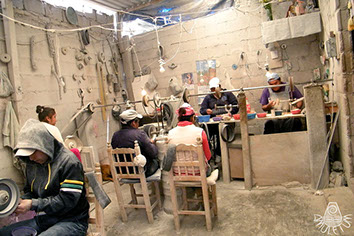 Obsidián je původem sopečné sklo, kdy je láva při prudkém doteku vody ochlazována, což vede ke vzniku sklovité struktury. Obsidián byl využíván indiánskými civilizacemi jako ochrana před zlými silami. Aztékové a Máyové jej užívali mimo jiné i jako nástroj, pro jeho dobré vlastnosti ostří. Ve vesniče v okolí Teotihuacánu se nachází mnoho řemeslníků pracujících s obsidiány, navštívili jsme mistra Efréna, který nám umožnil nahlédnou do jeho dílny a prohlédnout si celý proces zpracování kamene od nalezených kusů, přes řezání na menší tvary a následné leštění a dolešťování. Všechnu práci na kamenech zhotovují ručně na brusných kotoučech až do finální podoby, která se usazuje do šperku.