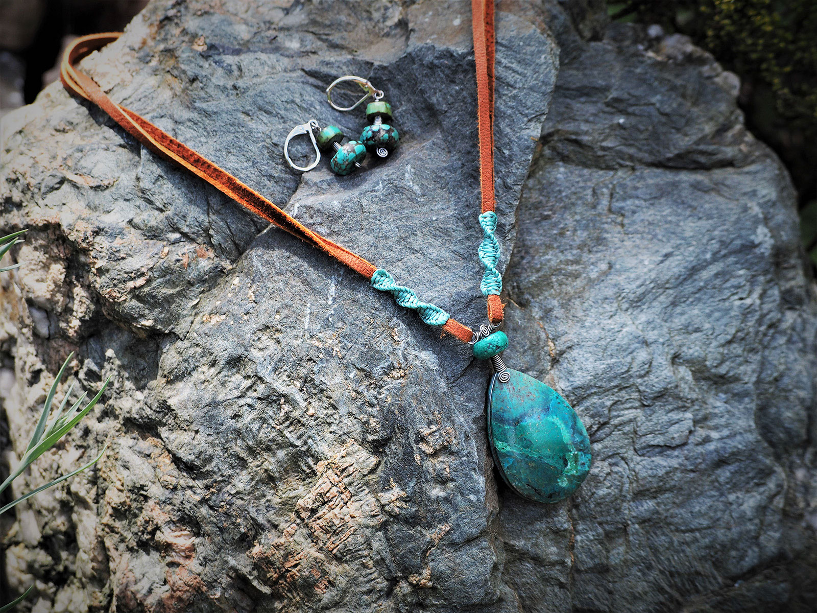 Stěžejní materiály, které používáme jsou dovezeny z Mexika. Mimo kamenů, které usazujeme do šperků používáme kvalitní a neškodné materiály, jako jsou dráty, voskované pryže, kůže, různá semínka, peříčka a perly... >